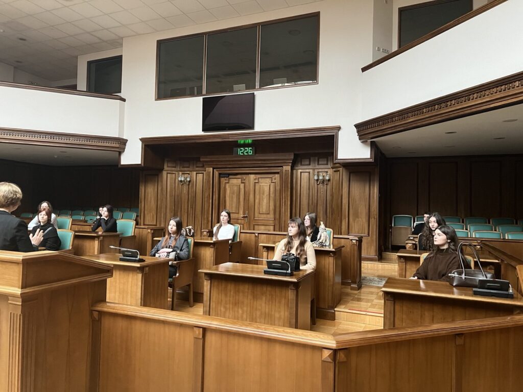 During the sightseeing tour, the students were told about the history of the establishment, powers, organization of activities, international relations of the Court, and the functions of the Secretariat of the Court.